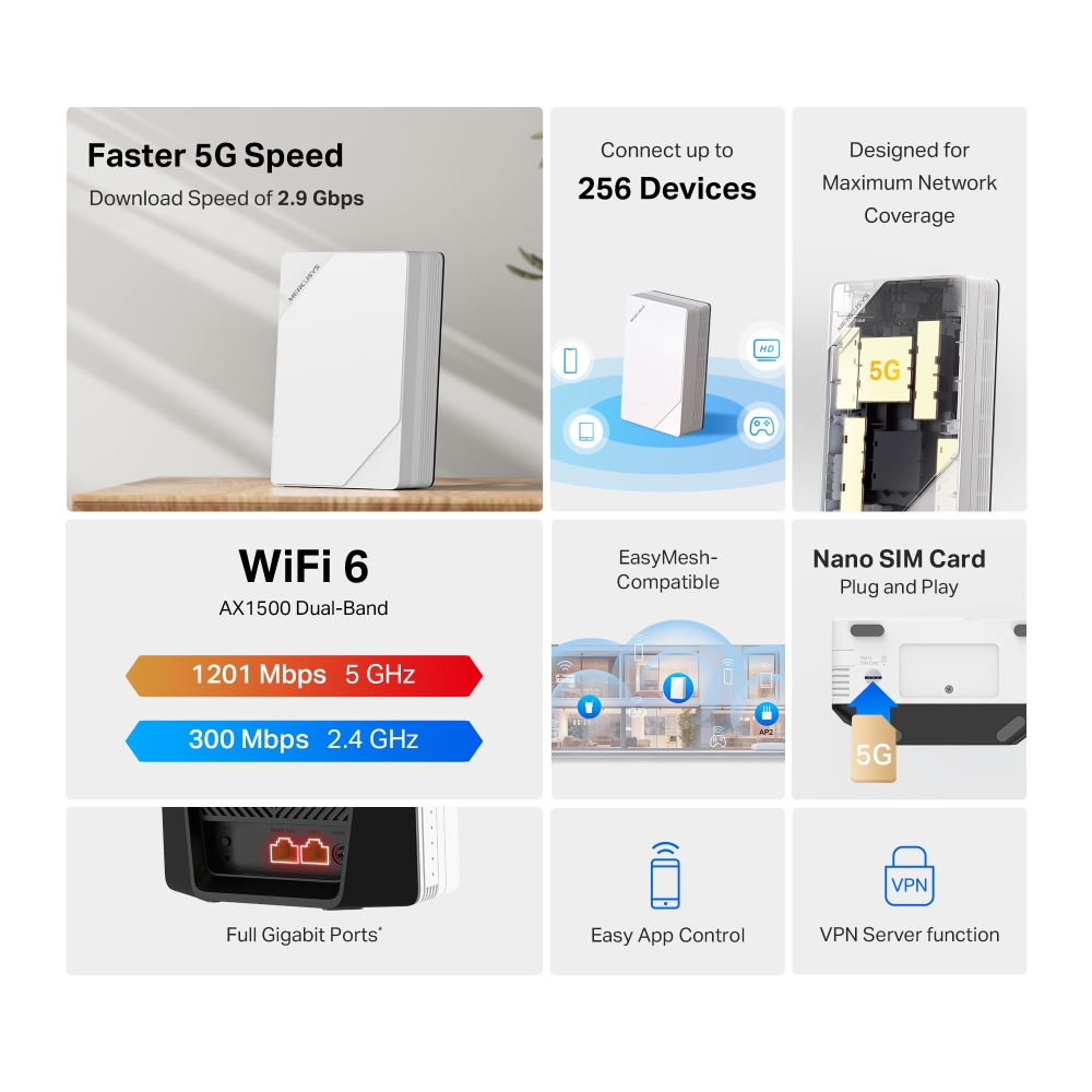 No complex wiring or professional setup needed. Simply insert a nano SIM card and power on the router to turn 5G into WiFi for multiple devices.