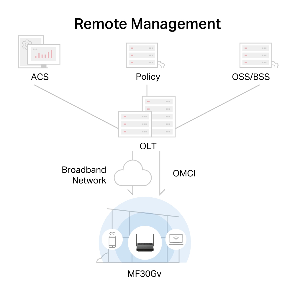 - Easy Remote Management: Supports the OMCl (ONU Management Control Interface) protocol, enabling centralized configuration and management