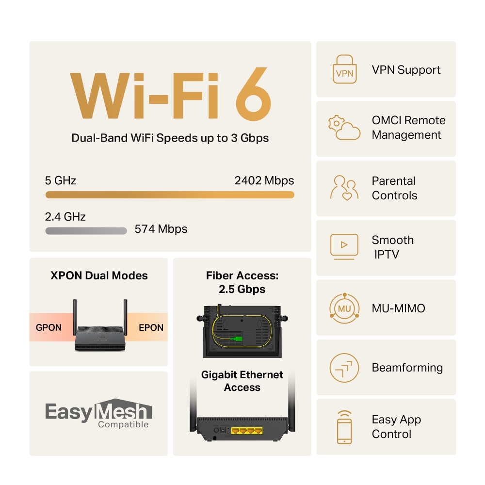 AX3000 Dual Band Wi-Fi 6 XPON Router