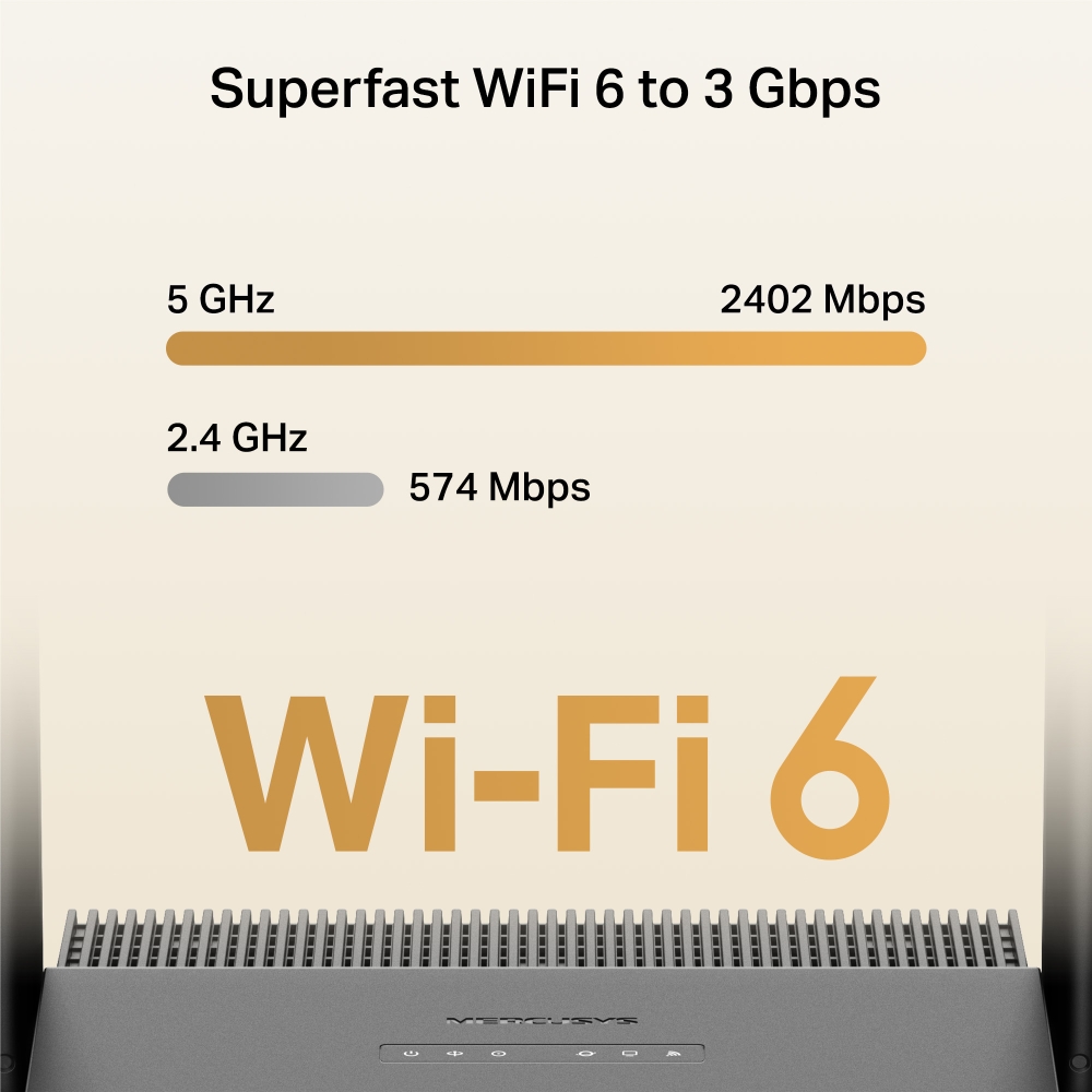 - Superfast Dual-Band WiFi: Up to 3 Gbps Wi-Fi speed, 574 Mbps on 2.4 GHz, 2402 Mbps on 5 GHz†