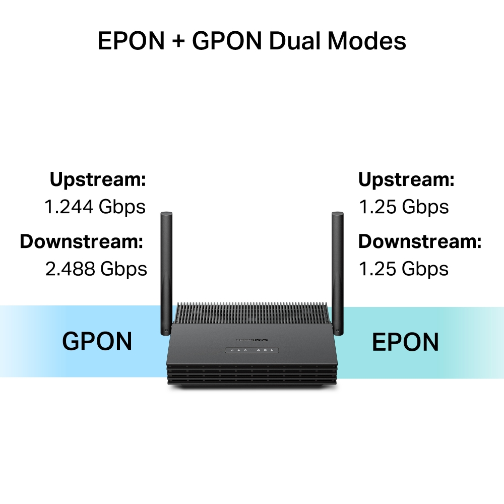 Upstream: 1.244 Gbps(GPON), 1.25 Gbps (EPON)