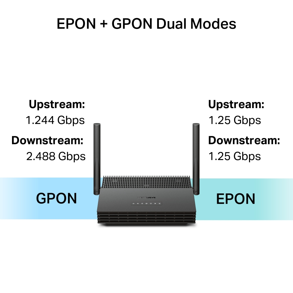 With dual-mode GPON and EPON, MF80Xv provides internet speeds up to 2.5 Gbps via GPON, meeting high-speed home networking needs.