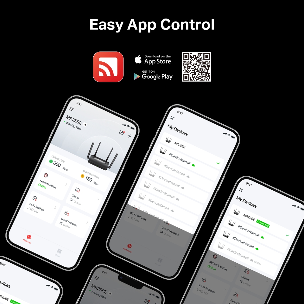 Equipped with 1× 1 Gbps WAN port and 3× 1 Gbps LAN ports, MR25BE allows you to take full advantage of your broadband speed. Plug your PCs, smart TVs, game consoles, or NAS devices into the ports for blazing-fast wired connections.