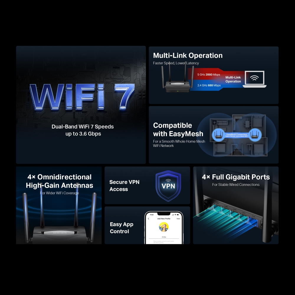 MERCUSYS BE3600 Dual Band Wi-Fi 7 Router丨MR25BE
