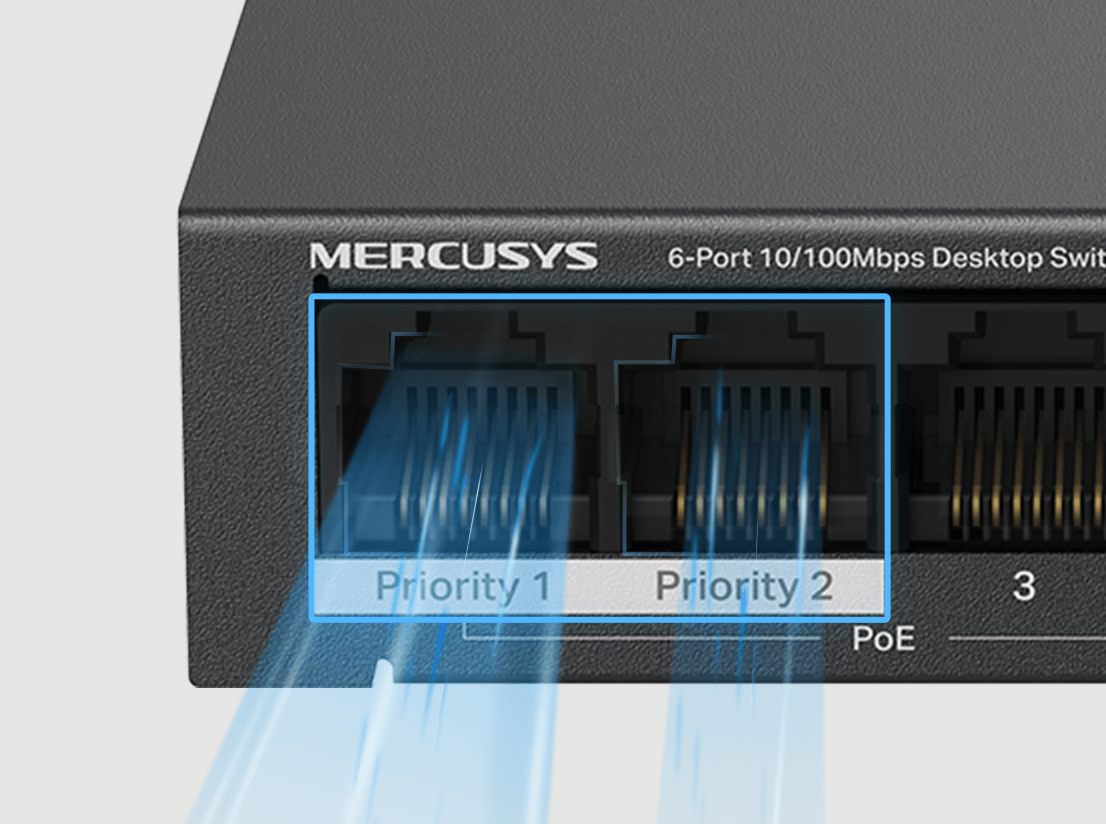 6× 10/100/1000 Mbps PoE+ RJ45 Ports