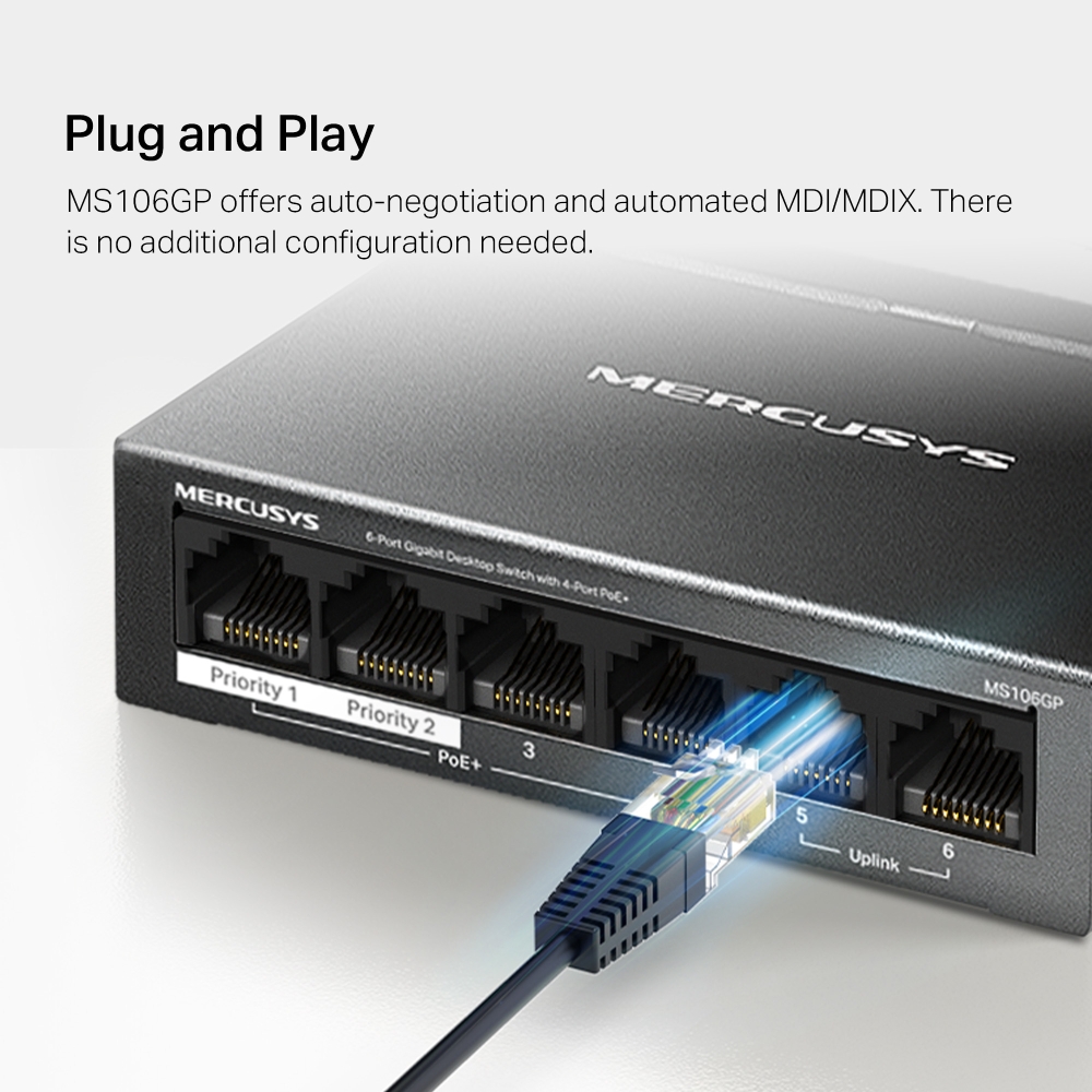 MS106GP offers auto-negotiation and automated MDI/MDIX. There is no additional configuration needed.