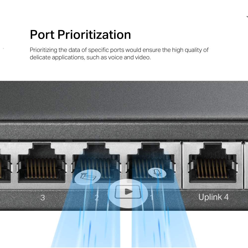 - Priority Mode ensures high priority of ports 1–2 to guarantee the quality of the sensitive applications