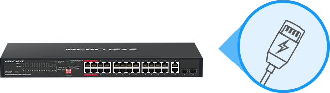 - • 24× 10/100/1000 Mbps PoE+ RJ45 Ports