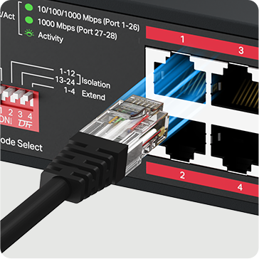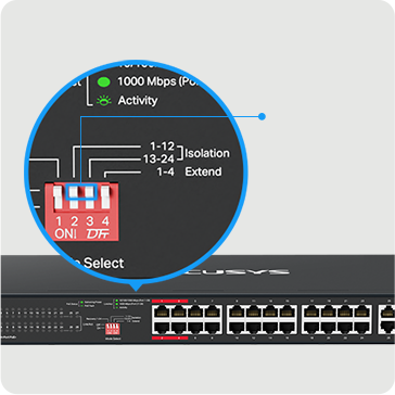 Isolation Mode Button Isolation Mode ButtonTraffic Separation Isolation Mode easily divides traffic for ports 1-12 & 13-24 to avoid snooping/tampering and isolates broadcast storm for higher security.