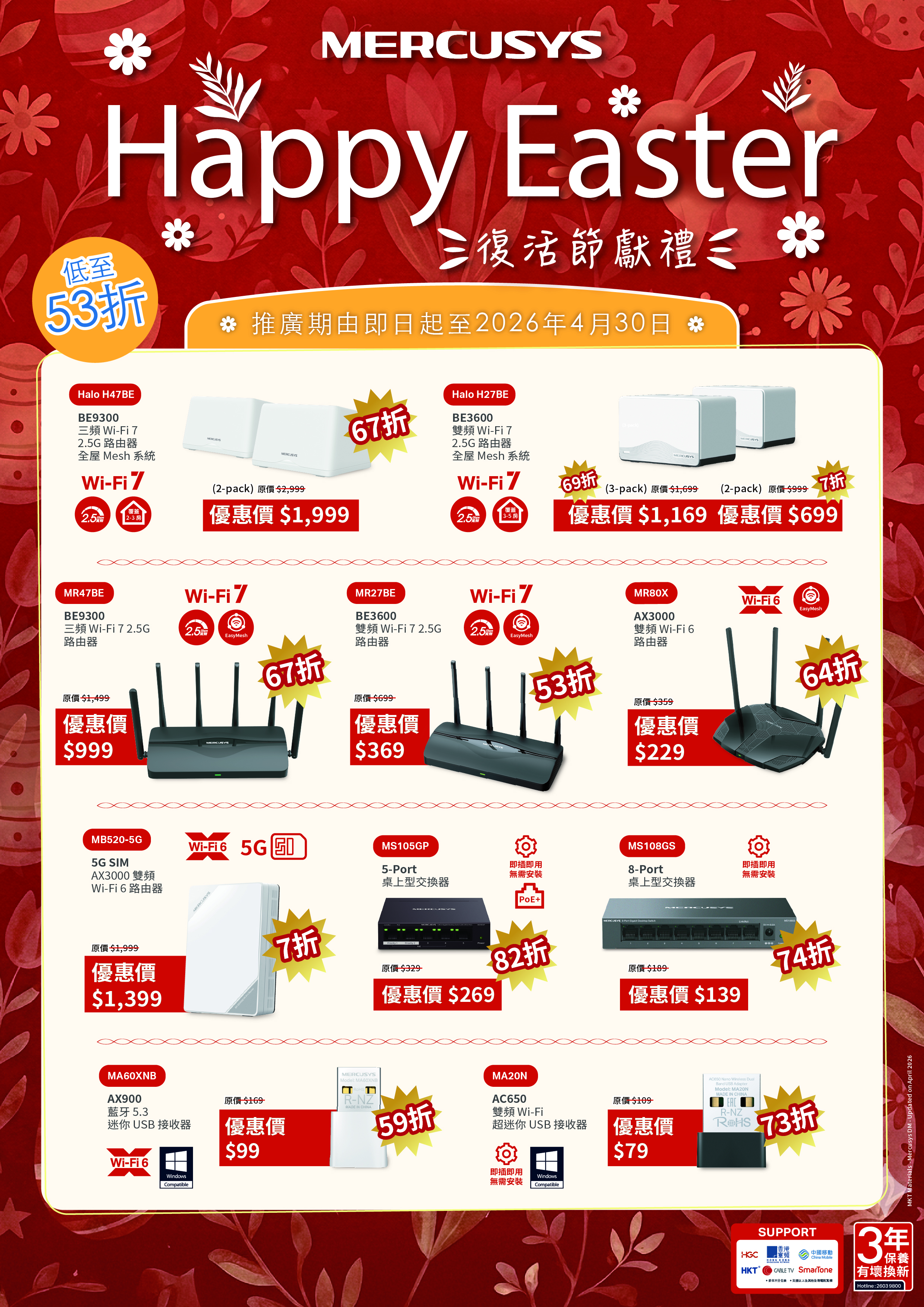 • Mercusys Happy Easter 復活節獻禮 低至53折