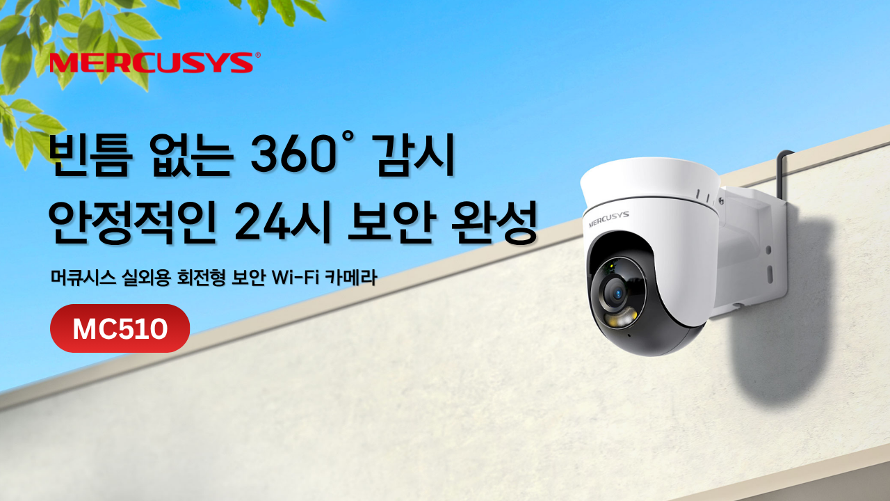 [2025년 11월 13일] 글로벌 네트워크 장비 전문 브랜드 머큐시스(MERCUSYS)가 실외 환경에서도 강력한 보안 성능을 제공하는 회전형 Wi-Fi 카메라 'MC510'을 한국 시장에 선보인다.