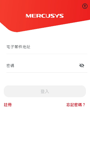 開啟APP,然後使用您的 MERCUSYS 雲端帳號登入,若您沒有帳號請參考此連結註冊。