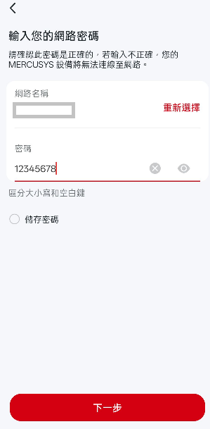 8.找到攝影機後,將攝影機連接到Wi-Fi 並輸入密碼, 點擊下一步