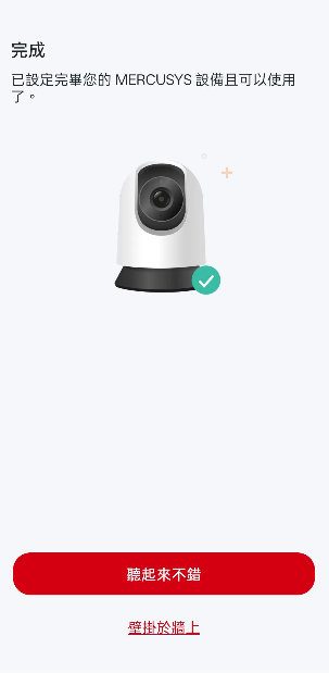 11.當"完成"頁面出現表示攝影機已成功新增完成,您可以開始使用攝影機了。