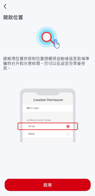 5.啟用位置存取和位置授權,並開啟手機WIFI功能