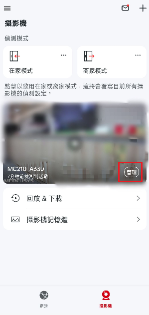 1.在 Mercusys App 選擇您的攝影機點擊「 管理 」