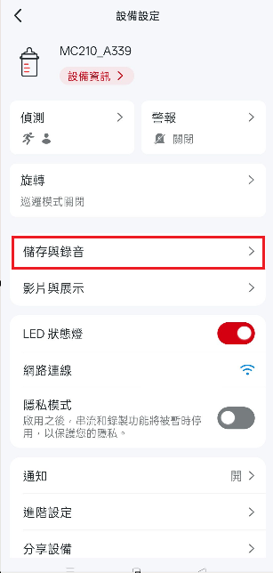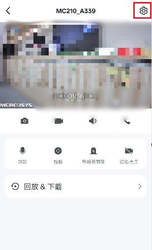 2.在攝影機畫面點選右上角圖案進入設備設定