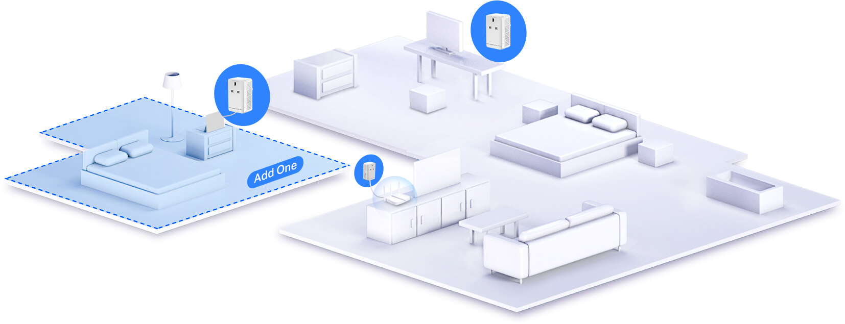 - Easy Expansion — Expand coverage by simply adding more Powerline adapters